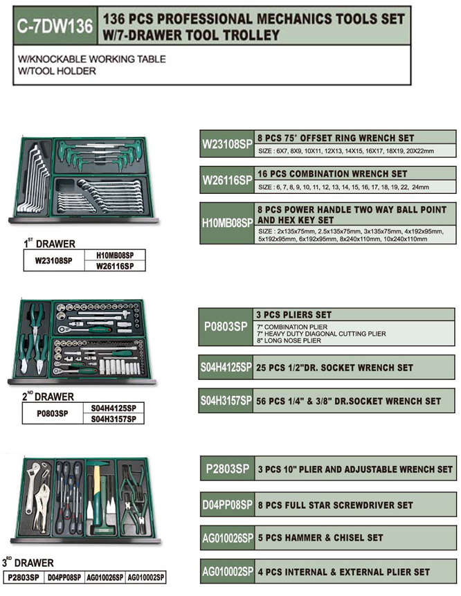 Thùng Đồ Nghề 136 Chi Tiết Jonnesway C-7DW136